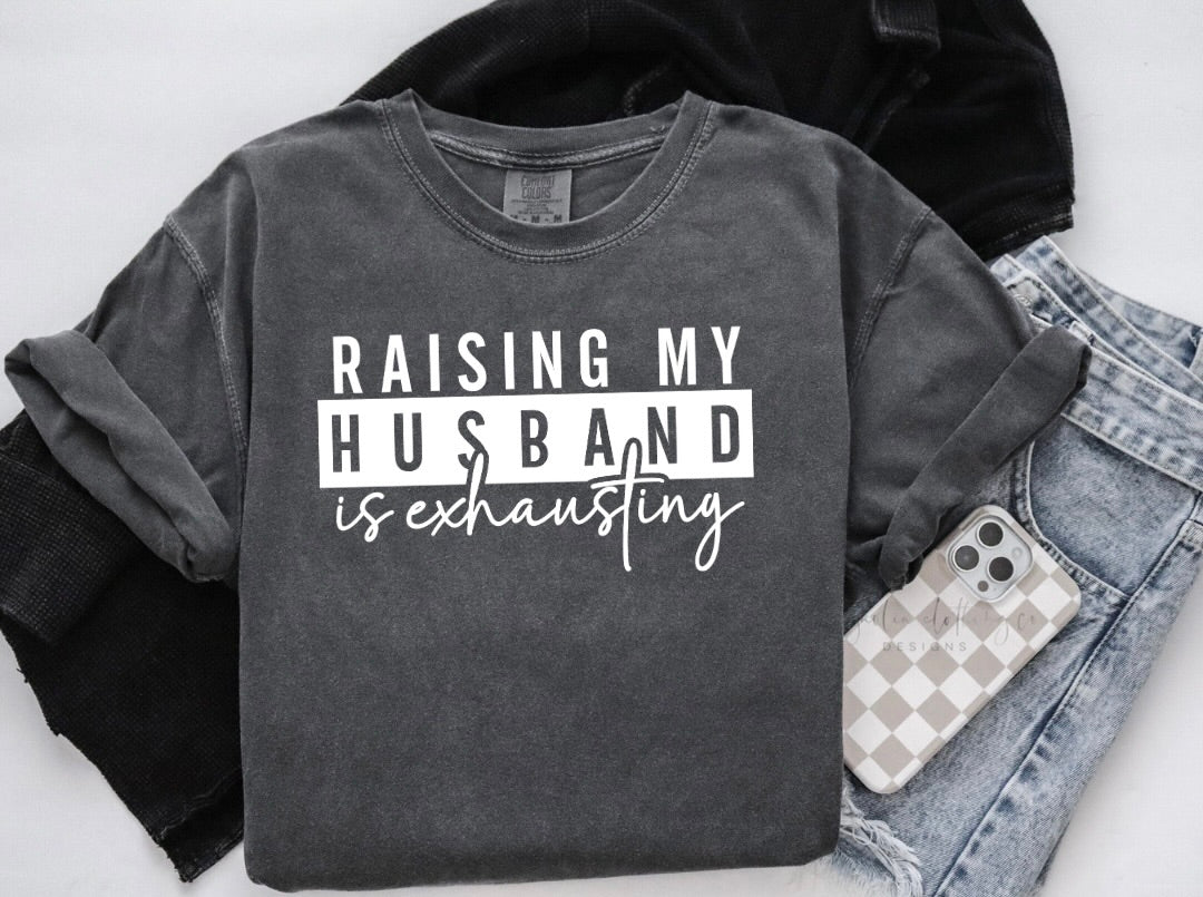 Raising My Husband is Exhausting {Screen Print Transfer} - ADULT 11x7